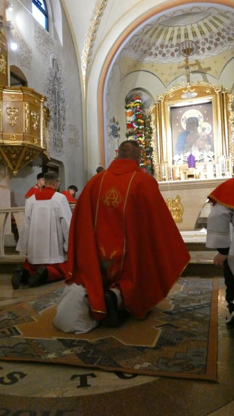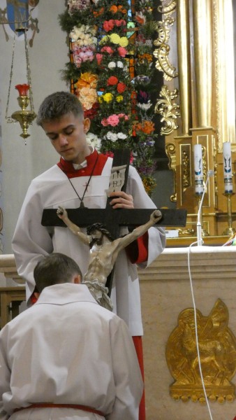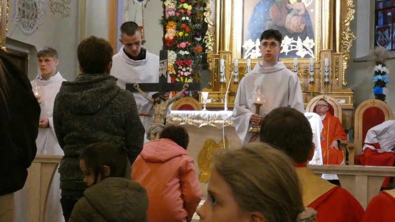 Pamiątką wydarzeń Wielkopiatkowych jest niepowtarzalna Liturgia Męki Pańskiej. Celebrans i asysta wyszli w ciszy. Przed ołtarzem kapłan leżał krzyżem. Po modlitwie wstępnej oczytane było proroctwo o Cierpiącym Słudze Jahwe i fragment Listu do Hebrajczyków. Następnie odczytany został z podziałem na role, opis Męki Pańskiej według św. Jana.
