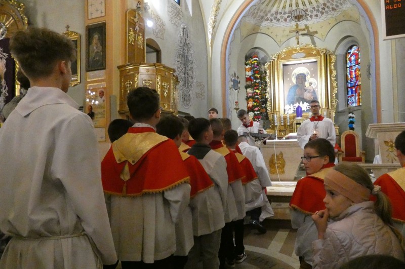 O piękno dzisiejszej Liturgii zadbała również Liturgiczna Słuzba Ołtarza, Pan Organista, schola parafialna oraz Ci którzy właczyli się w czytania, opis Meki Pańskiej i śpiewali psalm.