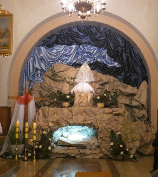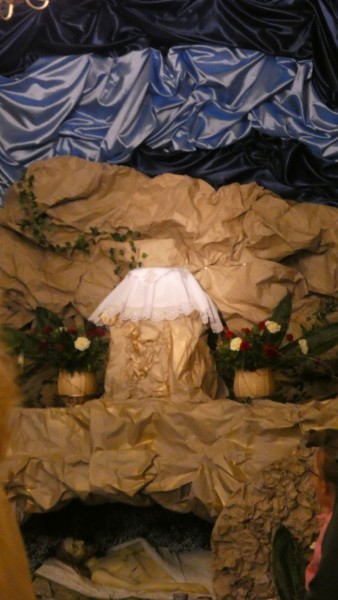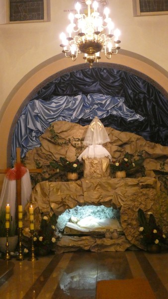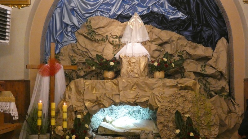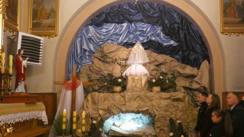 Ostatnią częścią liturgii Wielkiego Piątku była procesja do pięknie przygotowanego Grobu Pańskiego. Na specjalnym tronie wystawiono Najświętszy Sakrament w monstrancji okrytej białym przejrzystym welonem – symbolem całunu, w który owinięto ciało zmarłego Chrystusa.