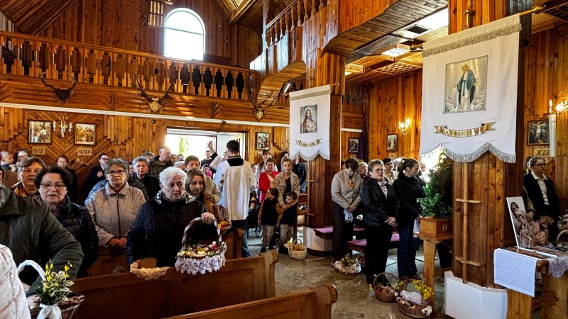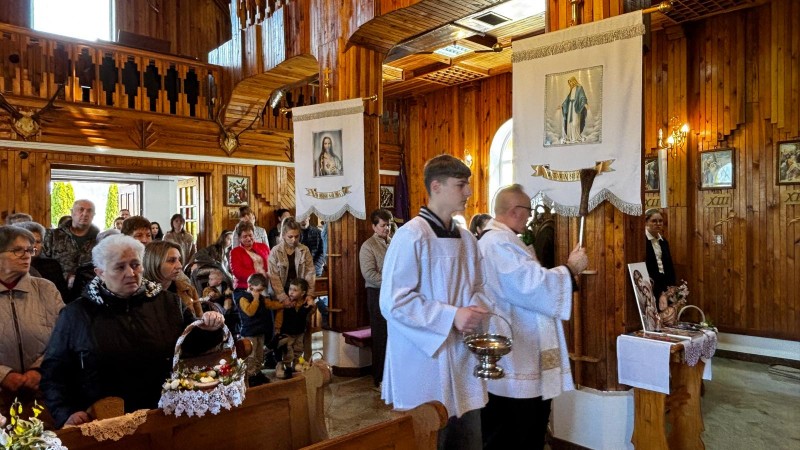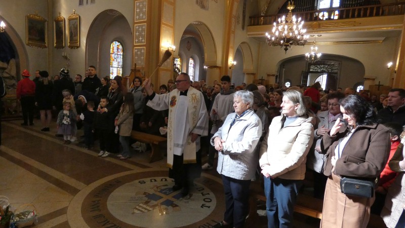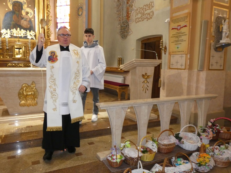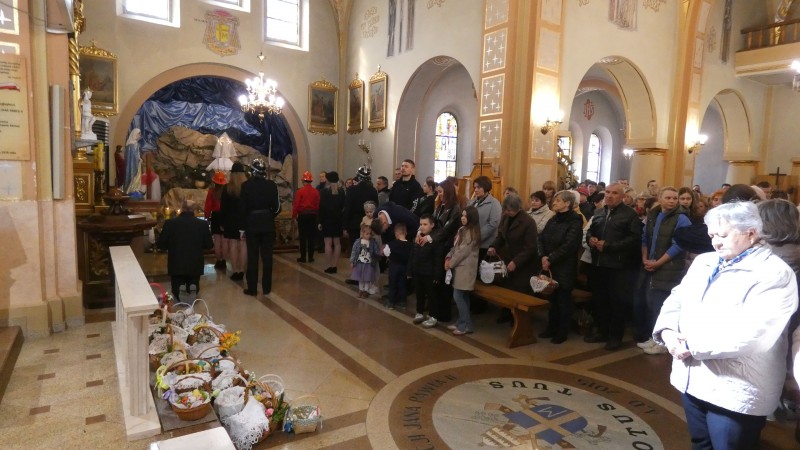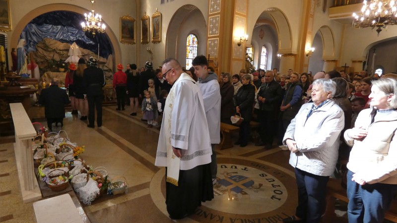 W dniu dzisiejszym święcenie pokarmów w naszej parafii miało miejsce w Kościele parafialnym, budynku szkoły oraz w Kościele w Olchowej. Jak co roku obrzęd ten zgromadził wiele osób a szczególnie dzieci.