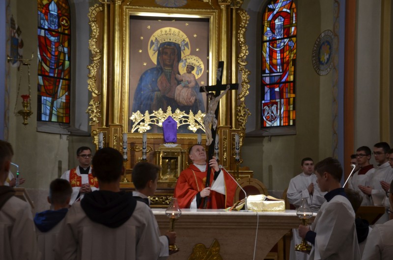 Wielki Piątek to dzień, w którym wspominamy mękę i śmierć Pana Jezusa. W naszej parafii od godzin porannych adorowano Jezusa w Ciemnicy. W godzinie Miłosierdzia wierni mieli możliwość uczestnictwa w modlitwie Koronką do Bożego Miłosierdzia, której przewodniczył Ks. Proboszcz. Następnie przeżywaliśmy Drogę Krzyżową prowadzoną przez Krąg Domowego Kościoła. Główne uroczystości Wielkiego Piątku odbyły się o godzinie 18.00. Liturgii Męki Pańskiej przewodniczył Ks. Proboszcz a rozpoczęła ją w ciszy procesja wejścia. Następnie kapłan w akcie pokutnym padł na twarz przed ołtarzem. Liturgia Męki Pańskiej to także święto liturgii słowa, z których najważniejszym jest opis Męki Pańskiej z Ewangelii według św. Jana. Następnie, po dłuższej i bardziej uroczystej niż zazwyczaj modlitwie powszechnej przyszedł czas na adorację krzyża. Kapłan kolejno odsłaniał ramiona krzyża i śpiewa: "Oto drzewo krzyża, na którym zawisło zbawienie świata", na co wierni odpowiadali: "Pójdźmy z pokłonem" i każdy indywidualnie mógł podejść do krzyża i oddać cześć Krzyżowi Chrystusa. Następnie odbyła się Komunia św. Na zakończenie Liturgii Najświętszy Sakrament przeniesiony został do ołtarza adoracji zwanego "grobem pańskim", na pamiątkę złożenia Ciała Jezusa w grobie. Boży Grób to ołtarz wystawienia Najświętszego Sakramentu, a nie adoracja figury Pana Jezusa. Monstrancja jest osłonięta przeźroczystym tiulem – jak Ciało Chrystusa całunem. Będziemy adorować Chrystusa przez całą Wielką Sobotę.