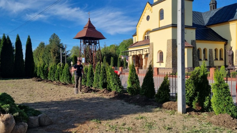 W czwartkowe popołudnie członkowie Rady Parafialnej, ministranci i chętni mężczyźni włączyli sie w akcję zasadzenie tui wzdłuż ogrodzenia budynków parafialnych. Posadzono ponad 100 krzewów, które bardzo ładnie prezentują się w obejściu plebani i budynku parafialnego.