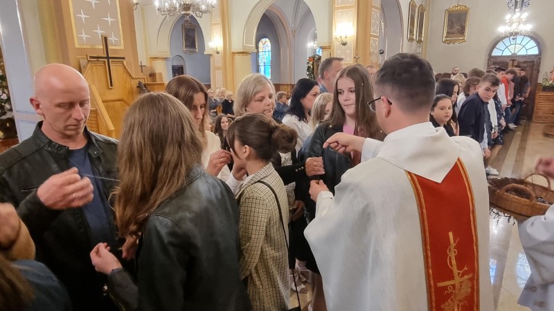 W piątek na Mszy św. wieczornej polecano w modlitwie młodzież przygotowującą się do przyjęcia Sakramentu Bierzmowania. Uczniowie klas VIII i pierwszych klas szkół średnich otrzymali z rak swoich rodziców poświecone krzyże jako znak jedności z Chrystusem. Mszy św. przewodniczył Ksiądz Karol Wandas - katecheta przygotowujący kandydatów do Bierzmowania. Na zakończenie kandydaci odnowili i złożyli na ołtarzu przyrzeczenia abstynenckie. Pzryjęcie sakramentu Bierzmowania nastąpi 28 maja.
