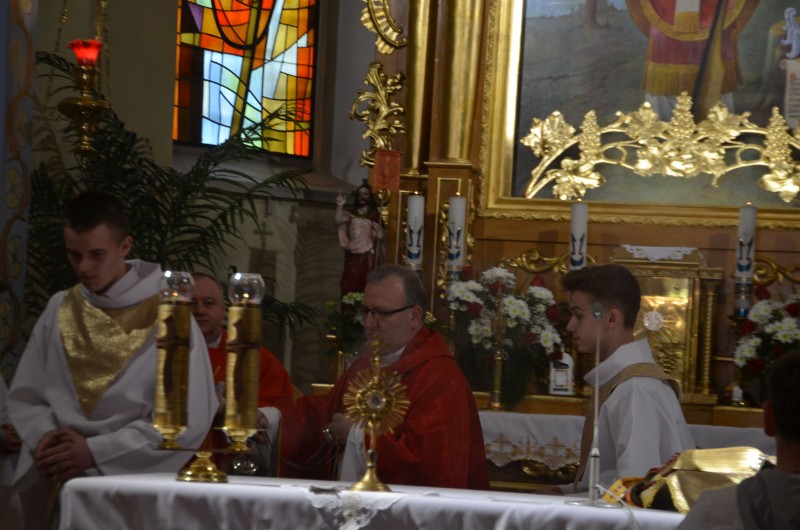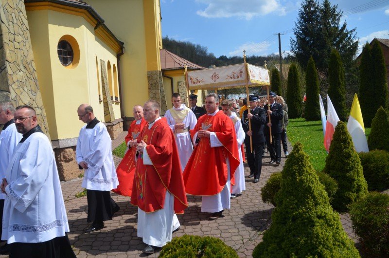 Dnia 24 kwietnia o godzinie 11:00 odprawiona została uroczysta suma ku czci naszego patrona Św. Wojciecha. Uroczystość w tym roku z racji III Niedzieli wielkanocnej została przeniesiona na poniedziałek. Sumie odpustowej przewodniczył i kazanie wygłosił Ks. Roman Łobaza proboszcz parafii Bezmiechowa Górna. W kncelebrze byli równiż Dziekan Dekanatu Rzepedzkiego Ks. Piotr Sobczyk, nasz krajan Ks. Marek Zarzyczny oraz Proboszcz Parafii Ks. Krzysztof Sobiecki. W obstawę Mszy św. włączyli się przedstawiciele parafii, czytając czytania, śpiewają psalm oraz Strażacy OSP pomagający w obstawie Procesji Eucharystycznej. Na zakończenie Ksiądz Proboszcz podziękował koncelebransom, kaznodziei, kapłanom przybyłym na uroczystość, dziewczętom niosącym feletrony, Służbie Liturgicznej Ołtarza, panu organiście i panu kościelnemu, dzieciom ze szkoły podstawowej oraz wszystkim, którzy tak licznie przybyli by uczestniczyć w tej parafialnej urocystości. Na zakończenie była procesja z Najświętszym Sakramentem oraz ucałowanie relikwii św. Wojciecha. Nie zabrakło również tradycyjnych kramów na któych można było zaopatrzeć się nie tylko w odpustowe rybki.