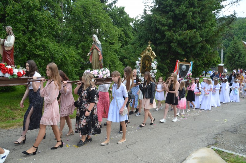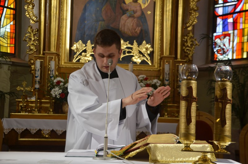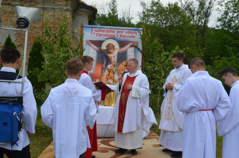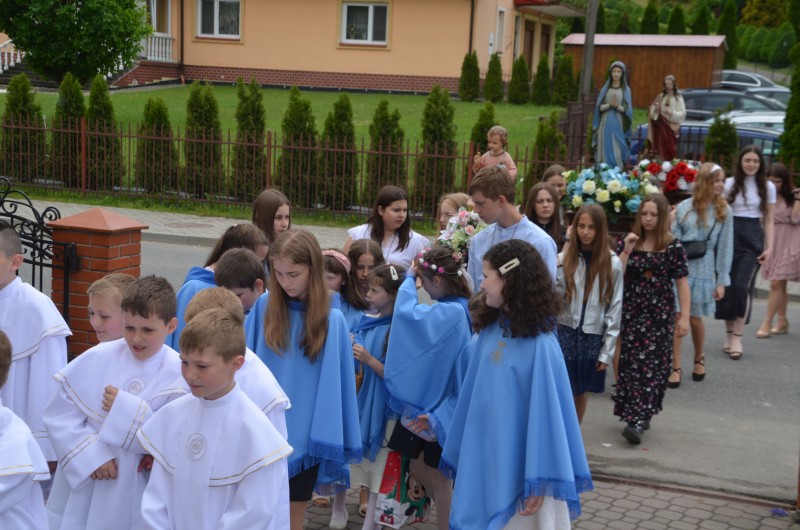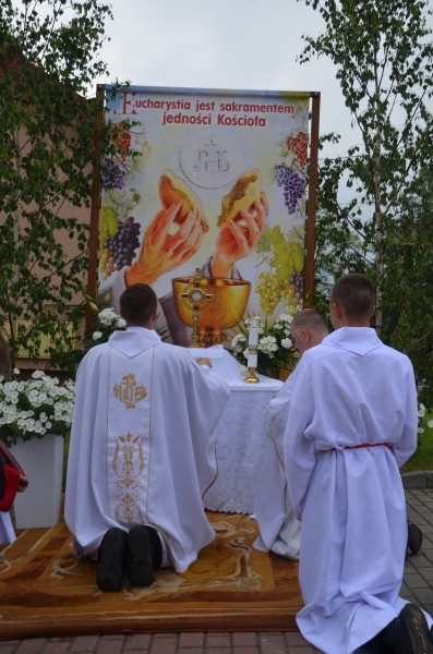 Uroczystość Bożego Ciała to najważniejsze Eucharystyczne święto w roku. Dziękujemy Bogu za bezcenny pokarm na drodze do wieczności – Eucharystię – czyli jego prawdziwe Ciało i Krew. W dniu dzisiejszym główna uroczystość w naszej parafii odbyła się o godzinie 10.30 i przewodniczył jej neoprezbiter ksiądz Marcin Piotrowski odprawiając Mszę św. prymicyjna i wygłosił kazanie. Powitany przez Księdza Proboszcza i przedstawicieli parafii podczas Mszy św. modlił się za wszystkich parafian o błogosławieństwo dla żywych i szczęście wieczne dla zmarłych. W obstawę Mszy św. włączyłą się młodzież, lektorzy i schola. Po Mszy Świętej odbyła się procesja z Najświętszym Sakramentem do czterech ołtarzy przygotowanych przez rodziców dzieci bierzmowanych i pierwszokomunijnych, strażaków i Radę Parafialną, Wspólne świadcetwo wiary w rzeczywistą obecność Pana Jezusa przechodzącego wśród naszych domostw było błogosławionym czasem łaski, której widocznym znakiem była bezdeszczowa pogoda. Po procesji Ks. Marcin udzielił również prymicyjnego błogosławieństwa.