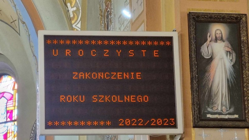 W przeostatni piatek czerwca uczniowie, nauczyciele i pracownicy szkoły zgromadzili się w kościele parafialnym by podziękować Panu Bogu za wszelkie łaski i błogosławieństwo jakiego doświadczyli podczas nauki i pracy w roku szkolnym. Mszy św. koncelebrowanej przewodniczył Ks. Mateusz Rutkowski - katecheta wraz z Ks. Proboszczeem Krzysztofem Sobiekim, który wygłosił do zebranych Słow Boże. Po zakończonej Eucharystii uczniowei wraz z nauczycielami udali się do budynku szkoły by uczestniczyć w uroczystym zakończeniu roku szkolnego.