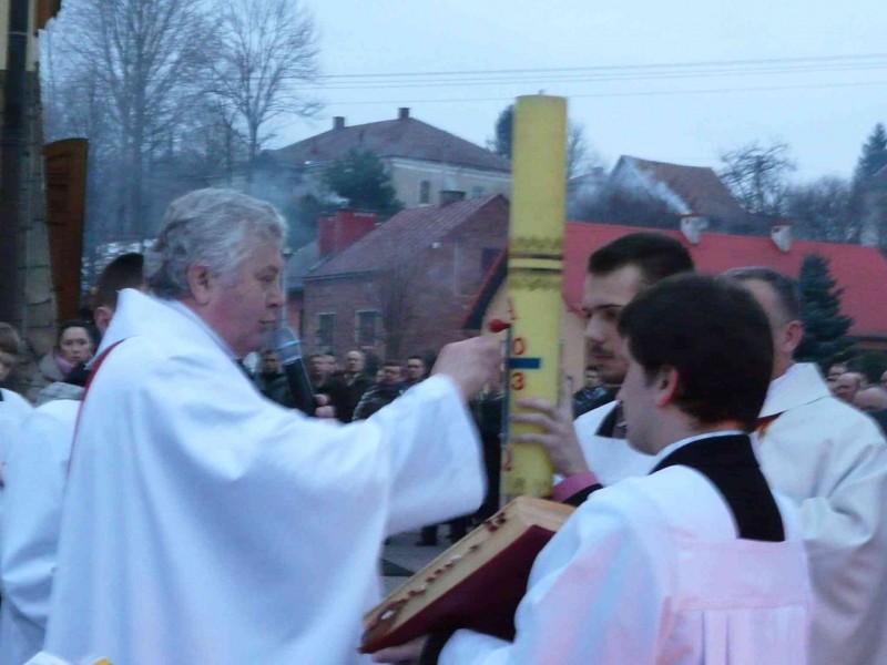 Wszystkie obrzędy Wigilii Paschalnej odbywają się o zmroku i nie wolno ich rozpocząć, zanim nie zapadnie noc, a należy je zakończyć przed świtem niedzieli. W tym dniu kapłan i diakon ubierają się w szaty mszalne koloru białego. Uczestnicy Wigilii przynoszą ze sobą świece ….. Wielka Sobota to dzień żałoby, który upamiętania złożenie ciała Chrystusa w grobie. Od Wielkiego Czwartku w dalszym ciągu tabernakulum pozostaje puste i otwarte, a wieczna lampka zgaszona. Wydawanie sakramentów jest tego dnia bardzo ograniczone. Tradycyjnie w Wielką Sobotę święci się pokarm, który następnie zostanie spożyty przy śniadaniu wielkanocnym. Jeszcze tysiąc lat temu jedynym składnikiem święconki był baranek – nieraz w całości upieczony na rożnie. Z czasem zwyczaj przyjął formę symboliczną - dziś święconka zawiera zwykle małe porcje typowej wielkanocnej strawy, czyli jaja, pieczywo, wędliny, sól, ciasto i inne. Co ciekawe, pod koniec średniowiecza święcono nawet wino i piwo. Choć tradycja święcenia pokarmu jest jednym z najbardziej charakterystycznych obrzędów wielkanocnych, najważniejszą uroczystością kościelną jest Wigilia Paschalna, będąca kluczowym momentem w całym roku liturgicznym. Pomimo że odbywa się ona w Wielką Sobotę, należy już do obchodów rezurekcyjnych i głosi radosną wieść o zmartwychwstaniu.