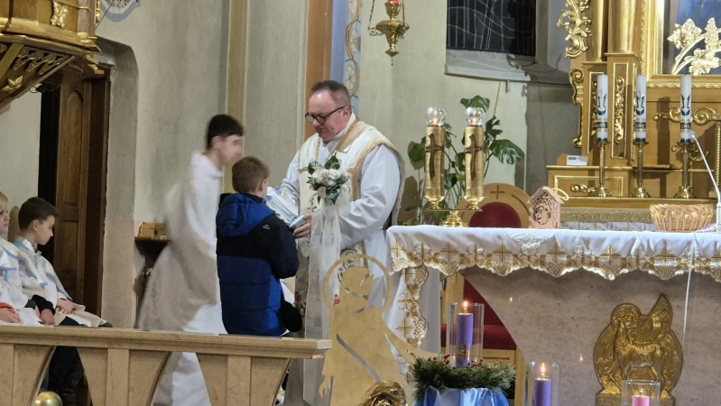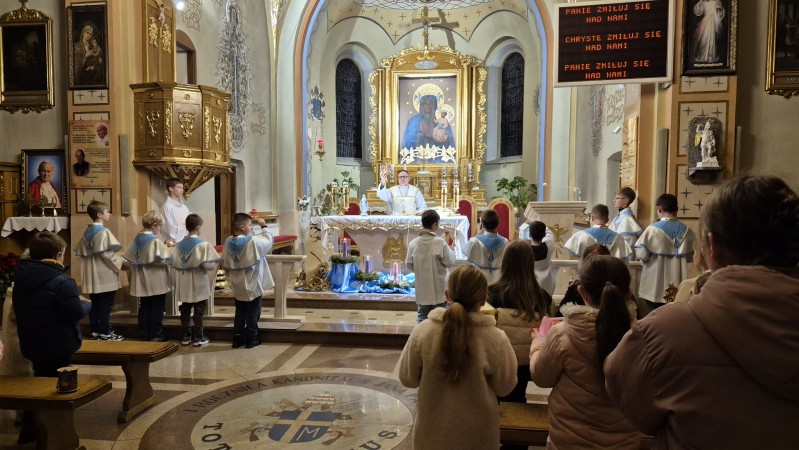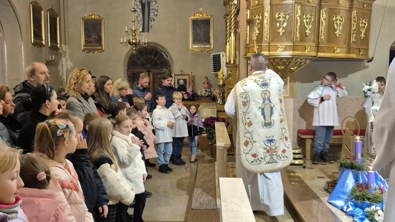 Uroczystość Niepokalanego Poczęcia Najświętszej Maryi Panny w naszej parafii rozpoczęto tradycyjnie procesją z lampionami. Po Mszy św. dzieci przygotowujące się do I Komunii św. otrzymały z rąk swoich rodziców poświęcone medaliki. To kolejny etap przygotowania uczniów klas III do pełnego udziału w Eucharystii.