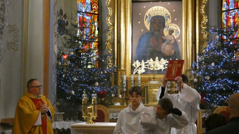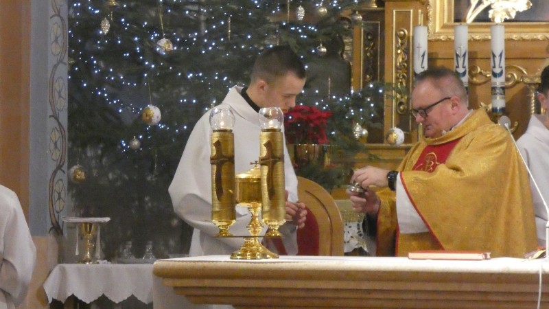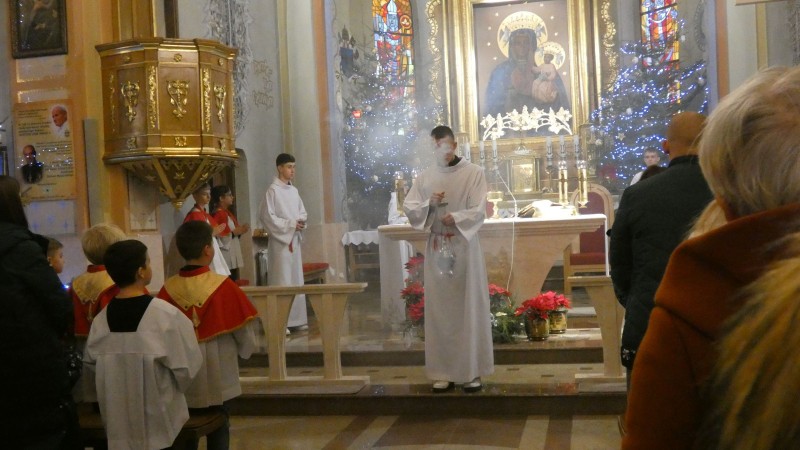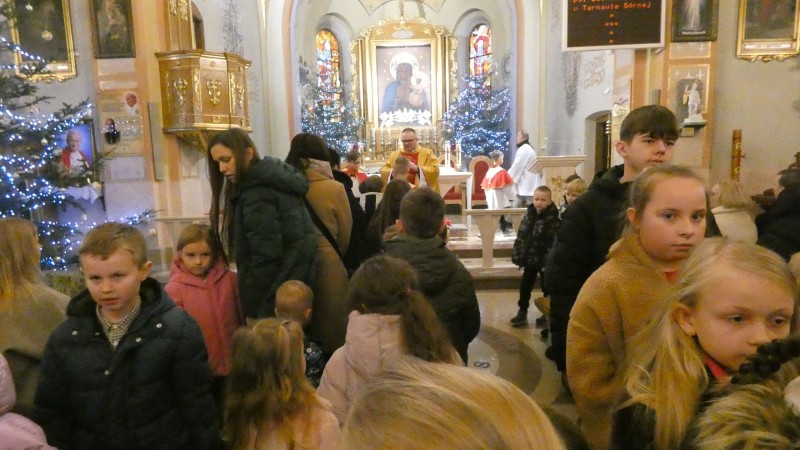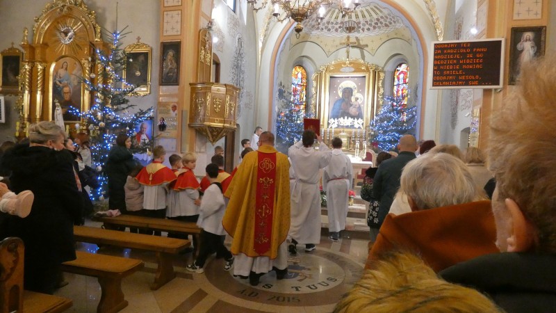Pierwsza niedziela po Bożym Narodzeniu obchodzona jest w Kościele rzymskokatolickim jako Niedziela Świętej Rodziny z Nazaretu. Podczas Mszy św. otaczano modlitwą wszystkie rodziny naszej parafii. W miejsce homilli Ksiądz Proboszcz odczytał List Episkopatu Polski na Niedzielę Świętej Rodziny. W oprawę Mszy św. o godz. 12.00 włączyła się młodzież oazowa, schola parafialna i Domowy Kościół. Na zakończenie było błogosławieństwo dzieci, które również nie zapomniały o odwiedzeniu szopki.