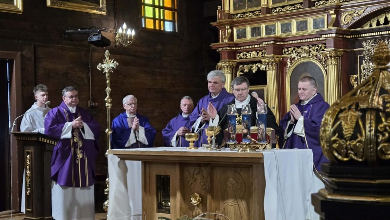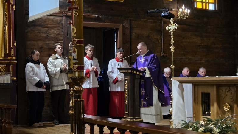 W dniu dzisiejszym przedstawiciele Parafii na czele z Proboszczem ks. Ryszardem Płatkiem uczestniczyli w uroczystościach pogrzebowych śp. Eugeniusza Sobieckiego - Taty byłego proboszcza naszej Parafii ks. Krzysztofa Sobieckiego. Mszy św. pogrzebowej przewodniczył ks. Bp. Krzysztof Chudzio. W przebieg Eucharystii włączyli się przedstawiciele naszej Służby Liturgicznej, czytając czytania i modlitwę wiernych. Na zakończenie ks. Krzysztof skierował słowa wdzięczności do uczestników uroczystości. Podziękował za udział w pogrzebie, za modlitwę, ofiarę Mszy św. przyjętą Komunię św. oraz za wszelką życzliwość. W słowach pożegnania dziękował Bogu za dar życia Taty, za Jego pracę dla dobra rodziny i kościoła, za przykład wiary, modlitwy, miłości do Jezusa Miłosiernego oraz pokornego i cichego życia.
