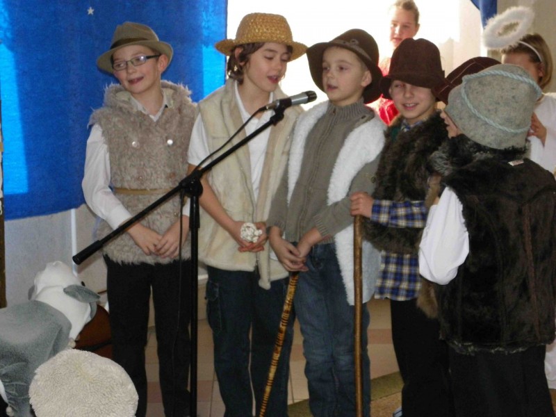 Z kolędą i opłatkiem, występem dla wszystkich uczniów, nauczycieli, pracowników szkoły i rodziców odbył się w naszej szkole apel bożonarodzeniowy. Program artystyczny, przygotowany przez P. Halinę Krajnik , w wykonaniu uczniów klasy II, uświetnił to spotkanie. Były wiersze, kolędy i pastorałki, które wprowadziły wszystkich w świąteczny nastrój. Pani dyrektor podziękowała dzieciom za piękne przedstawienie i złożyła życzenia świąteczne i noworoczne dzieciom, rodzicom, nauczycielom oraz pracownikom szkoły. Przypomniała o zachowaniu bezpieczeństwa w czasie ferii świątecznych. Na zakończenie Ksiądz Katecheta pobłogosławił opłatki, którymi podzielono się składając sobie serdeczne życzenia. W pogodnych nastrojach wszyscy pożegnali się, opuszczając szkołę na dwa tygodnie.