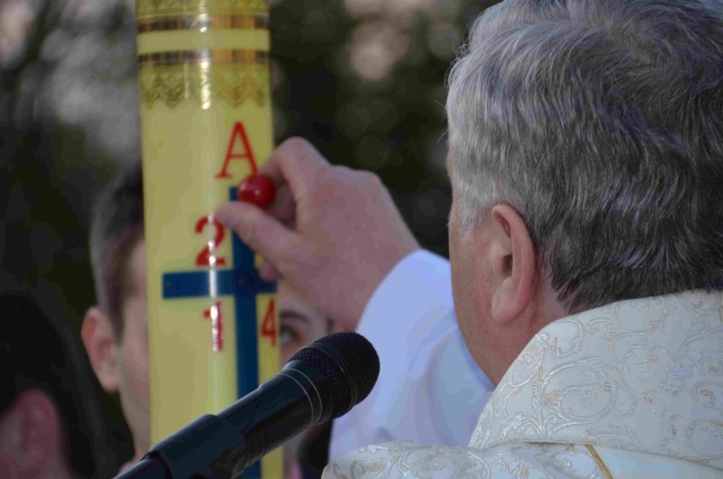 Obchody zmartwychwstania Jezusa Chrystusa rozpoczynają się po zapadnięciu zmroku. Przed kościołem rozpala się ognisko, którego płomienie zostają poświęcone przez kapłana, ubranego w białe szaty. Następnie od poświęconego ognia zapala się paschał (dużą świecę), symbolizujący Chrystusa, czyli Światłość świata, co ma uzmysławiać, że dokonała się Pascha, przejście z mroku do jasności, ze śmierci do życia.