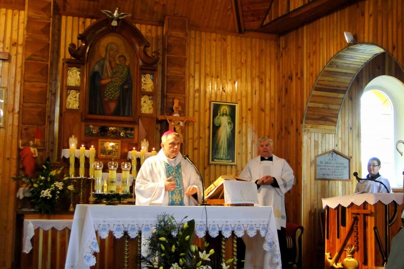 W niedzielę Ks. Biskup złożył także wizytę w kościele filialnym w Olchowie, gdzie po powitaniu przez przedstawicieli olchowskiej wspólnoty odprawił Mszę św. w intencji mieszkańców Olchowy.