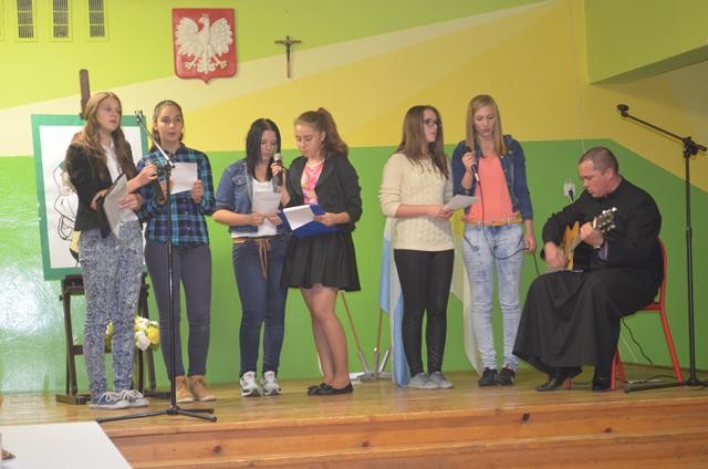 Dzień Papieski jest obchodzony od 2001 r., w niedzielę poprzedzającą rocznicę wyboru kardynała Karola Wojtyły na Stolicę Piotrową. Organizuje go powstała pod patronatem Konferencji Episkopatu Polski Fundacja „Dzieło Nowego Tysiąclecia”. Jej celem jest upamiętnianie pontyfikatu Jana Pawła II poprzez upowszechnianie nauczania Papieża oraz wspieranie edukacji zdolnej młodzieży z małych miast i wsi. Od początku inicjatywy Dnia Papieskiego Akcja Katolicka Archidiecezji Przemyskiej corocznie organizuje konkurs dla młodzieży gimnazjalnej, nawiązujący tematem do hasła danego roku. W każdej edycji bierze w nim udział kilkuset gimnazjalistów.W tym roku w dniu 26.09.2014 w Gimnazjum im. Jana Pawła II w Tarnawie Dolnej odbyła się już kolejna edycja konkursu, który przebiegał pod hasłem „Jan Paweł II – Świętymi Bądźcie”. Jan Paweł II samą świętość definiuje następująco: „Świętość stanowi kres drogi nawrócenia, ponieważ „nie jest ono celem samo w sobie, ale jest raczej pielgrzymowaniem do Boga, który jest święty. Być świętym znaczy naśladować Boga i sławić Jego imię w dziełach, których dokonujemy w naszym życiu (por. Mt 5,16)".Celem konkursu jest w szczególności:- wzbudzenie u młodzieży wdzięczności Bogu za dar Jana Pawła II- upowszechnianie nauczania Jana Pawła II- przekazywanie wartości chrześcijańskich- ukazywanie młodzieży wzorca osobowego- integracja młodzieży Archidiecezji PrzemyskiejW konkursie udział wzięło 36 uczniów z różnych szkół gimnazjalnych Archiprezbiteratu Sanockiego.Występy i przygotowane materiały oceniała komisja w składzie:ks. Krzysztof Żołyniak - przewodniczącyStanisław Jarosz - Blizne - odpowiedzialny za AK Archiprezbiterat SanokAnna Kruczek - Tarnawa GórnaBarbara Silarska - StrachocinaEdyta Kruczek - PrzysietnicaLaureatką konkursu została Mariola Furdak reprezentująca Gimnazjum w Tarnawa Dolna, natomiast wyróżnienia otrzymali:1.Grupa uczniów z zespołu szkół nr.1 w Przysietnicy 4 uczniów.2.Weronika Kruczek-Gimnazjum Tarnawa Dolna 1 uczennica.3.Grupa uczniów z zespołu szkół nr2-Przysietnica 12 uczniów.Wszyscy laureaci i wyróżnieni w dniu 11.10.2014r. reprezentowali Archiprezbiterat Sanok w finale konkursu, który odbył się w kościele oo. Franciszkanów w Sanoku. Tu także Mariola Furdak powtórzyła swój sukces i została jedną z siedmiu laureatów. Serdecznie wszystkim gratulujemy. red. i foto A. Zarzyczny