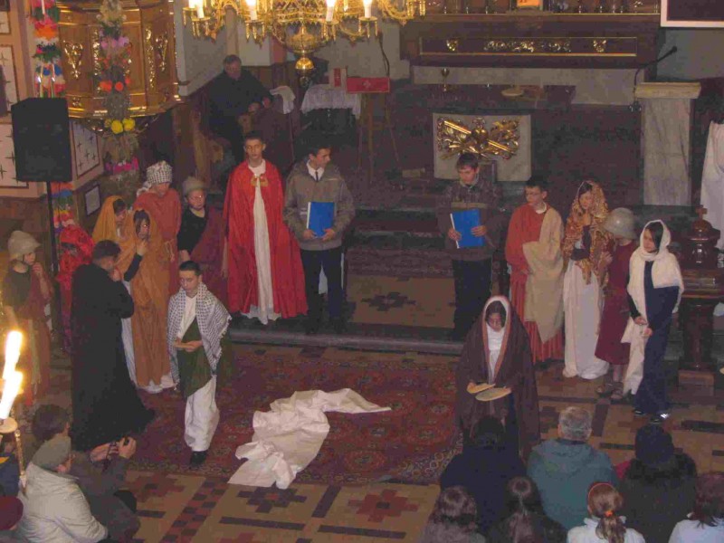 Szczególnym przeżyciem w Wielki Piątek było Misterium Męki Pańskiej w wykonaniu uczniów Gimnmazju im. Jana Pawła II w Tarnawie dolnej pod kierownictwem ks. Krzysztofa Żołyniaka, Pani Marii Obal i Pana Bogdana Nycza.