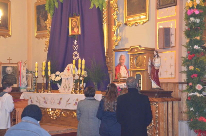 Natomiast wieczorem parafianie zgromadzili się na Mszy Wieczerzy Pańskiej, która rozpoczęła Triduum Paschalne. Miała ona bardzo uroczysty charakter. Była dziękczynieniem za ustanowienie Eucharystii i kapłaństwa służebnego, które w homilii zebranym przybliżył Ksiądz Józef Watras. W obstawę Mszy św. włączyli się dorośli, czytając czytania mszalne a młodzież uświetniła Eucharystię swoim śpiewem. Na zakończenie dzieci złożyły kapłanom życzenia a młodzież zadedykowała piękną pieśń.