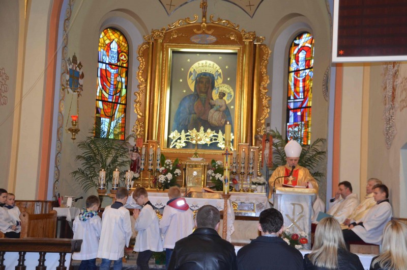 W dniu dzisiejszym w naszej Parafii gościliśmy JE Ks. Biskupa Stanisława Jamrozka. Przybył do naszej wspólnoty parafialnej udzielić Sakramentu Chrztu św. Pawełkowi. Przewodniczył Mszy św. koncelebrowanej wraz z Proboszczem Parafii Ks. Janem Krupińskim, Ks. Józefem Watrasem oraz Ks. Markiem Zarzycznym. Ks. Biskup w słowie skierowanym do obecnych podkreślił ważność rodziny i daru jakim dla rodziny jest dziecko. W obstawę Mszy św. włączyła się schola parafialna. Na zakończenie w modlitwie Koronką do Bożego Miłosierdzia zgromadzeni wypraszali Boże Miłosierdzie dla całej naszej Parafii a Ks. Biskup udzielił wszystkim zebranym Pasterskiego Błogosławieństwa.