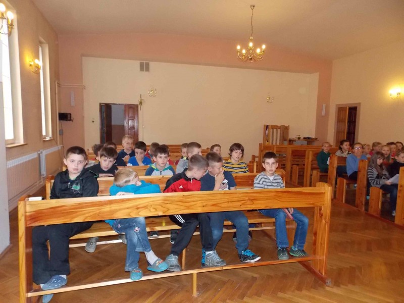 W poniedziałek, 25 maja uczniowie klasy III w komplecie oraz dziewczynki ze scholi i kilku ministrantów (39 osób), pod opieką wychowacy, Klaudii, Natalii i Pawła udali się do Ośrodka Rekolekcyjnego w Rzepedzi, gdzie serdecznie przywitał wszystkich Ks. Janusz Łuc - Dyrektor tego ośrodka. Po zakwaterowaniu sie w pokojach była smaczna kolacja a później Eucharystia i "majówka" w kaplicy. Na wieczór zaplanowano ognisko z kiełbaskami i zabawy muzyczno - ruchowe przygotowane przez diakonię młodzieżową. Po zjedzeniu kiełbasek zabawom nie było końca. Ok. 22 zakńczono zabawy bo kolejny dzień miał przynieść nowe atrakcje. Dla większości nadchodzaca noc miałą być pierwszą bez obecności rodziców. Dzieci przy obecności opiekunów czuły sie bezpiecznie i bez problemu zasnęły. Niektórzy spali bardzo krótko. W jednym z pokoi już około godziny piątej wszyscy byli gotowi do mycia zębów. Kolejny dzień mimo niezbyt sprzyjającej pogody był równie atrakcyjny. Dzieci po śniadaniu uczestniczyły we wspólnych zabawach a później przygotowywały dla swoich mam kolorowe obrazki. Dopełnieniem zajęć była Msza św. podczas której modliły się w intencji swoich rodziców. Następnie zjadły pyszny obiad. Cały czas marzyły o wyjściu na zewnątrz i zostały wysłuchane. Po obiedzie na chwilę wyszło słońce i wszyscy udali się w stronę wsi Rzepedź. Po drodze musieli pokonać naturalne przeszkody na rzece. Niektórzy pokonali j samodzielnie, inni trochę zmoczyli buty, a mniej odważnych Paweł przenosił na swoich ramionach. Jak sie okazało była to nie lada atrakcja. Na chwilę dzieci zatzrymały się na miejscowym placu zabaw. Nestety zaczęło kropić, a potem padać i trzeba było wracać do Ośrodka. Oczywiście było sporo chętnych do powrotu przez rzekę. Wybrano jednak inny, alternatywny wariant. Po powrocie przygotowano się do wyjazdu w stronę domu, pakowano rzeczy i porządkowano pokoje. W oczekiwaniu na autokar obejrzano fragment filmu "Madagaskar3". Jednodniowy pobyt dla większości był zbyt krótki, a świadczy to o tym, że cel wyjazdu został osiągniety.