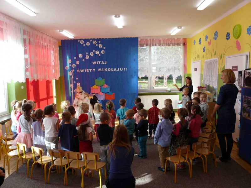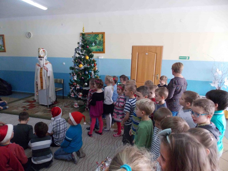 W piatek Mikołaj odwiedził również dzieci ze szkoły Podstawowej. Dzieci bardzo radośnie przywitały zacnego gościa. Śpiewały piosenki, mówiły wiersze i dialogowały z Mikołajem. Wszystkie otrzymały wspaniałe prezenty, obiecały być grzeczne i zaprosiły Mikołaja za rok.