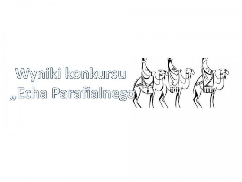 W dniu 3 stycznia po Mszy św. o godz. 12.00 odbyło się losowanie nagród dla dzieci, ktore wzięły udział w konkursie "Echa Parafialnego". Prawidłowe rozwiązanie krzyżówki brzmiało: Mędrcy ze Wschodu. Główne bnagrody w postaci książek religijnych wygrali; Julia Rudy, Amelia zajdel, Sylwester Komarski. Pozostali uczestnicy otzrymali nagrody pocieszenia. dziękujemy wszystkim za udział w konkursie i zachęcamy do udziału w przyszłych edycjach.