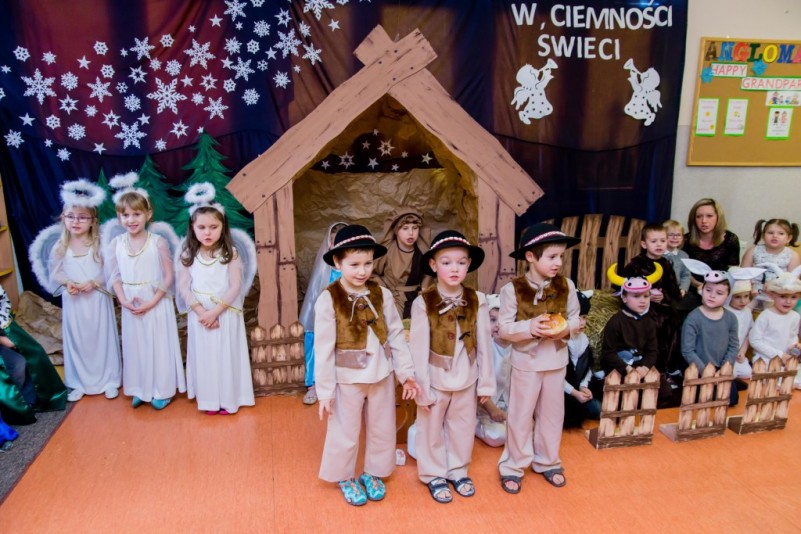 Dzień 29 stycznia był wyjątkowm dniem dla naszego Przedszkola, tego właśnie dnia gościliśmy wyjątkowych gości, którymi były babcie i dziadkowie. Przybyli oni do nas na zaproszenie swioch wnucząt, aby świętować tegoroczny Dzień Babci i Dzień Dziadka. Tradycyjnie jak co roku dzieci zaprezentowały się w jasełkach oraz zaśpiewały i zatańczyły dla swioch dziadków. Na zakończenie ku zaskoczeniu wszyttkich grupa rodziców bardzo udanie odegrała skecz "Kiedy babcia była mała". Całe spotkanie przebiegało w bardzo radosnej atmosferze, któremu towarzyszyło wspólne śpiewanie kolęd. Goście opuszczali nas pełni wzruszenia i z uśmiechem na twarzy. Bardzo dziękujemy wszystkim a w szczególnosci rodzicom, którzy przyczynili się do uświetnienia tej uroczystości i już zapraszamy na przyszły rok.