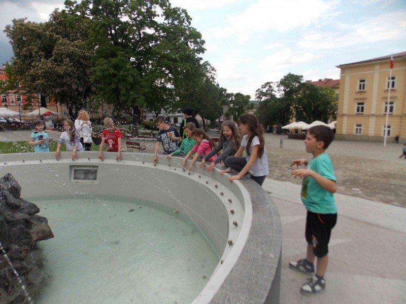 W dniu 11 maja 2016 r. dzieci z klasy III wraz ze swoimi rodzicami, Ks. Katechetą i wychowawczynią udały się na Dziękczynną Pielgrzymkę Dzieci Pierwszokomunijnych do Kalwarii Pacławskiej. Poranek był chłodny, ale jasne promienie słońca obudziły wszystkich uczestników, którzy punktualnie o godz. 6.30 stawili się na parkingu, by pielgrzymować do Cudownego Obrazu Matki Bożej Kalwaryjskiej. O godzinie 9.00 uczestniczyliśmy w Eucharystii sprawowanej przez Ks. Grzegorza Lęcznara, który przygotował dzieci do Pierwszej Spowiedzi i Komunii Świętej. Po Eucharystii wysłuchaliśmy przepięknie opowiadanej przez jednego z Ojców Franciszkanów, historii powstania Sanktuarium, słynącego łaskami cudownego obrazu oraz kultu Matki Bożej Kalwaryjskiej. Po zakupieniu pamiątek i posileniu się smacznym obiadem, pełni duchowych przeżyć wyruszyliśmy w dalszą drogę. Z Kopca Tatarskiego podziwialiśmy widoki na Przemyśl, Bieszczady i Ukrainę. Niezapomnianych wrażeń dostarczyły dzieciom zjazdy torem saneczkowym. Jak same twierdziły "bardziej bali się rodzice". Następnie udaliśmy się do Przemyśla, gdzie nie obyło się bez skosztowania pysznych lodów oraz "przywitania z niedźwiedzicą" w fontannie na Rynku. W drodze powrotnej zatrzymaliśmy się na tarasie widokowym Gór Słonnych, skąd roztacza się wspaniały widok na całe Bieszczady. Pogoda dopisała i dzięki temu bez problemów dostrzegliśmy Lesko oraz Klasztor w Zagórzu. To był piękny czas, za który dziękujemy Panu Bogu i Matce Najświętszej oraz wszystkim, dzięki którym odbyła się ta pielgrzymka.