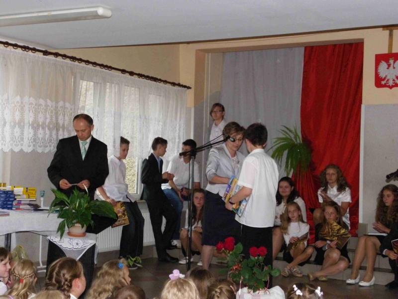 W piątek zakończono rok szkolny 2012/2013. O godz .8.00 dzieci, młodzież i pracownicy szkoły podstawowej i gimnazjum zgromadzili się w kościele parafialnym, by podczas Mszy św. podziękować Panu Bogu za siły i Jego opiekę. Następnie wszyscy udali się do szkoły by pożegnać swoich starszych kolegów z klasy VI SP i III gimnazjum. Podczas pięknie przygotowanych części artystycznych nie zabrakło podziękowań dla rodziców, nauczycieli, wychowawców i pracowników szkoły. Dziękowano również uczniom za ich trud i zaangażowanie na rzecz szkoły i środowiska. Uroczystościom towarzyszyła radość, alepojawiły się też łzy wzruszenia na twarzach absolwentów. Po części oficjalnej wszyscy uczniowie udali się do swoich klas, by po raz ostatni w tym roku szkolnym spotkać się ze swoim wychowawcą i odebrać nagrody w postaci świadectwa.