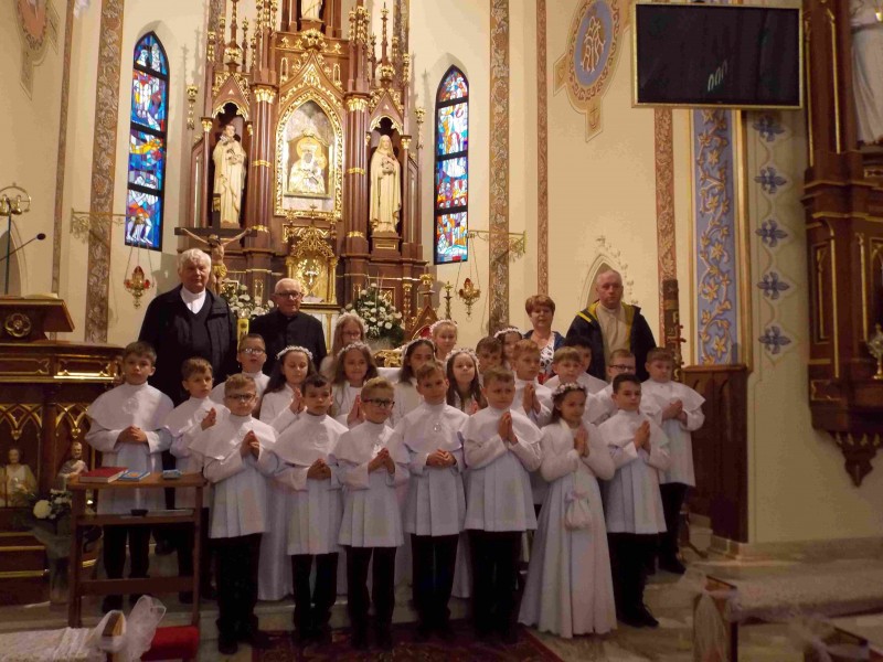 W dniu dzisiejszym o godz. 8.00 dzieci pierwszoklomunijne wraz ze swymi rodzicami, Księdzem Proboszczem, Księdzem Katechetą, wychowawczynią i dziewczynami ze scholi udałysię na pielgrzymkę dziękczynną do Matki Bożej Pocieszenia w Jodłówce. Po przybyciu na miejsce ubrane w stroje pierwszokomunijne, zgromadziły się w Sanktuarium. Tam wysłuchały krótkiej historii miejsca i uczestniczyły w Eucharystii. Po Mszy św. udały się do Cudownego Żródełka by napić się wody. Po uczcie duchowej był czas na posiłek w pięknym lokalu w Rokietnicy. Wzmocnieni ciepłym posiłkiem przybyli do Przemyśla by poznać duchową stolicę naszej Archidiecezji. Zwiedzili Katedrę. W Kaplicy Seminarium Duchownego odmówli Litanię Loreatańską i zobaczyli Instytut kształcący przyszłych kapłanów. Po tym spotkaniu był czas na lody w słynnej Cukierni Fiora oraz spacer po Starym Mieście. Na zkończenei pielgrzymki przyszedł czas na rekreację na Torze saneczkowym. Mimo początkowym lękom, zjazdom nie było końca. Pielgrzymka była bardzo udana tym bardziej, że pogoda dopisała i wszystkie zaplanowane punkty programu zostały w pełni zrealizowane.