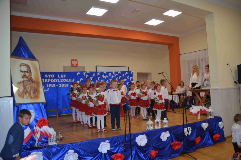 W czwrtek, późnym popołudniem w świetlicy w Wielopolu miało miejsce szczególne spotkanie. W sali wypełnionej po brzegi zgromadzili się rodzice, dziadkowie, mieszkańcy Wielopola oraz zaproszeni goście aby uczestniczyć w Wieczornicy z okazji Stulecia Odzyskania Niepodległości. Program artystyczny z tej okazji przygotowały dzieci z Niepublicznego Przedszkola w Wielopolu pod czujnym okiem swoich wychowawców. Były wiersze i piosenki patriotyczne, inscenizacja oraz tańce. Starszaki zatańczyły pieknego Poloneza. Odśpiewano też Hymn Polski i Rotę. Na koniec wręczono nagrody dzieciom za udział w konkursie "Moja Ojczyzna".