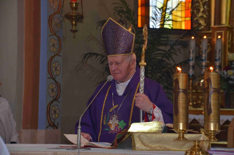 Na Mszy św. o godz. 12.00 udzielił sakramentu bierzmowania naszej młodzieży – uczniom klasy VIII i III Gimnazjum. Przewodniczył Mszy św. i skierował do wszystkich Słowo Boże.