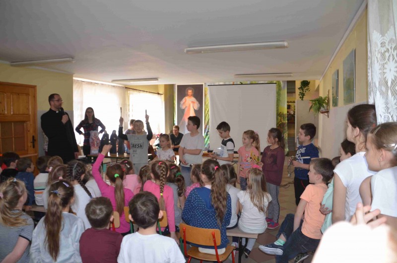 8 kwietnia w naszej szkole w ramach Rekolekcji Parafialnych miało miejsce spotkanie z Ks. Rekolekcjonistą. Ksiadz Daniel Trojnar - Dyrektor Domu Rekolekcyjnego we Wrocance przybył do nas z członkami Wspólnoty Życia. Podczas spotkania uczniowie mogli zastanowić się nad swymi talentami. Było też dużo śpiewu i zabawy. Dzieci aktywnie włączały się w spotkanie i chętnie dzieliły się swoimi doświadczeniami.