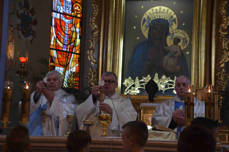 Wielki Czwartek obchodzimy pamiątkę ustanowienia przez Chrystusa sakramentów kapłaństwa i Eucharystii podczas Ostatniej Wieczerzy. Uroczystą Mszą Świętą Wieczerzy Pańskiej rozpoczęliśmy Triduum Paschalne. Przy ołtarzu stanęli księża pracujący w naszej parafii: proboszcz ks. Jan Krupiński, ks. wikary Grzegorz Lęcznar oraz rodak Ks. Jacek Zarzyczny. Wielkoczwartkowe nabożeństwo zgromadziło wielu wiernych w naszej parafii. W trakcie Mszy św. podczas śpiewu Chwała na wysokości w świątyni biły dzwony. Po zakończeniu śpiewu dzwony i organy zamilkły. Podczas uroczystości śpiewała schola młodzieżowa a czytania czytali przedstawiciele parafii. Msza Wieczerzy Pańskiej to też czas naszego dziękczynienia za Jezusowi za dar Eucharystii i kapłaństwa. Dzieci z klasy pierwszej złożyli naszym Kapłanom życzenia. Ważnym wydarzeniem dla Parafii było wręczenie medalu Panu Kościelnemu za zasługi dla parafii przyznanego przez Księdza Arcybiskupa. Po zakończeniu Wieczerzy ks. proboszcz przeniósł Najświętszy Sakrament do kaplicy adoracji, zwanej „Ciemnicą”, gdzie do godz. 22 wierni mogli przy Nim czuwać.