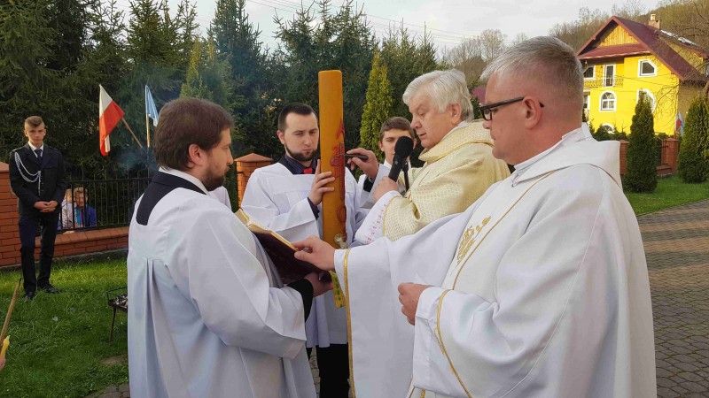 Pierwszą z czterech części liturgii tej nocy jest obrzęd światła, na który składają się poświęcenie ognia, przygotowanie paschału, procesja do kościoła i śpiew hymnu o nazwie Exultet, który wykonał Ks. Gzregorz.