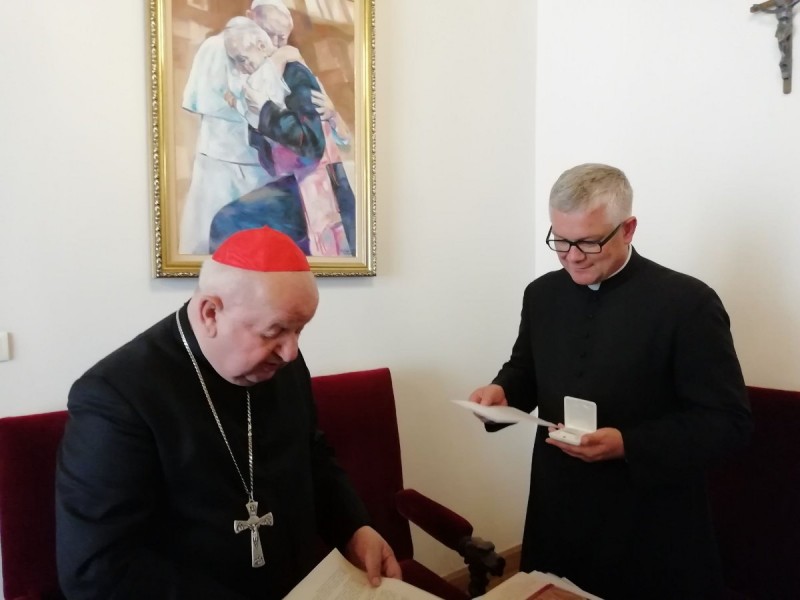 W piątek, 21 czerwca 2019 r., podczas prywatnej audiencji u ks. kard. Stanisława Dziwisza, nasz rodak ks. Jacek Zarzyczny - Dyrektor Domu Rekolekcyjnego „Nazaret” w Heluszu otrzymał do rąk własnych relikwie świętego Jana Pawła II . Ks. Kard. Stanisław Dziwisz podczas przekazywania relikwii św. Jana Pawła II dla Domu Rekolekcyjno – Wypoczynkowego w Heluszu skierował także słowo do rodzin naszej archidiecezji, w którym podkreślił jak bardzo ważna była dla Jana Pawła II troska o rodzinę.