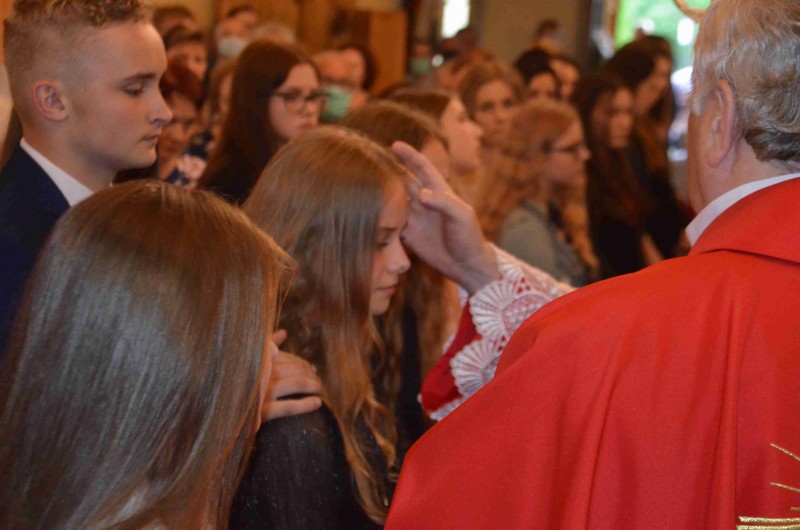 W dniu dzisiejszym uczniowie klasy 8 z rak Ks. Biskupa Krzysztofa Chudzio przyjęli sakrament Bierzmowania. Do tej uroczystosci przygotowywali się pod kierunkiem Ks. Grzegorza Lęcznara. Msze św. koncelebrowali równiez ks. Proboszcz Jan Krupiński i Rodak Ks. Marek Zarzyczny.