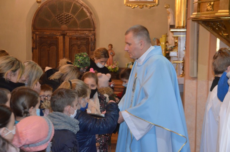 W Uroczystość Niepokalanego Poczęcia NMP po Mszy Roratniej dzieci klasy III otrzymały z rąk Proboszcza Ks. Krzysztofa Sobieckiego Cudowne Medaliki z wizerunkiem Patronki Dnia. Po Mszy św. rodzice wraz z dziećmi wzięli udział w katechezie przygotowującej do I Komunii św.