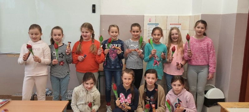 W poniedziałek, 8 marca podczas Mszy św. wieczornej modlono się w intencji kobiet z naszej Parafii. Na zakończenie Mszy Ksiądz Proboszcz złożył życzenia wszystkim kobietom, matkom, dziewczętom. Życzył by brały wzór i uciekały się zawsze do najpiękniejszej z Kobiet jaką była Maryja. Wszystkie obecne niewiasty obdarowane zostały słodkim upominkiem. O swoich koleżankach w Dniu Kobiet pamiętali również chłopcy z klas młodszych. W tym dniu każda dziewczynka otrzymała tulipana i słodką niespodziankę.