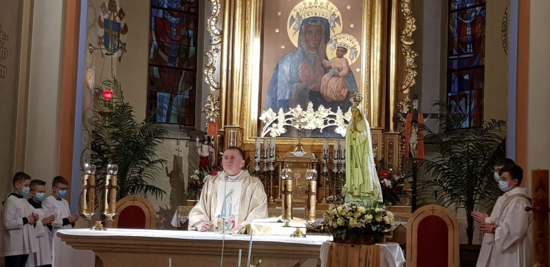 W maju Kościół czci w sposób szczególny Maryję – Bożą Rodzicielkę. Przez cały miesiąc odbywają się nabożeństwa majowe. W I sobotę miesiąca maja w naszym Kościele przy figurze Matki Bożej Fatimskiej rozpoczęliśmy nabożeństwa pierwszych sobót miesiąca wynagradzające Niepokalanemu Sercu Maryi. Po Mszy św. przy wystawionym Najświętszym Sakramentem odmówiony został różaniec i kwadransowe rozważanie tajemnicy Radosnej - Znalezienie Jezusa w świątyni. Na koniec odmówiona została Litania Loretańska.