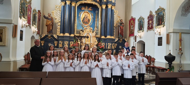 We wtorek dzieci z klasy III wraz ze swoimi rodzicami, Księdzem Proboszczem i wychowawcą udali się na pielgrzymkę dziękczynną do Sanktuarium Matki Bożej Królowej Nieba i Ziemi do Jaślisk. W drodze podziwiano piękno krajobrazu i dziękowano Panu Bogu za cudowną pogodę. Najpierw zatrzymano się w kościele w Woli Niżnej. Zachwytom dzieci i rodziców nie było końca. Piękny ikonostas i wnętrze świątyni zachwycił swoim blaskiem. Po krótkiej modlitwie podążano w dalszą drogę. W Jaśliskach przywitał wszystkich Kustosz Sanktuarium, Proboszcz Ks. Jacek Zarzyczny. Następnie dzieci w odświętnych strojach komunijnych wraz z rodzicami uczestniczyły w odsłonięciu cudownego obrazu Matki Bożej Jaśliskiej. Mszy św. przewodniczył Ks. Proboszcz Krzysztof Sobiecki. Rodzice odczytali czytanie i modlitwę wiernych. Dziewczynki zaśpiewały psalm. Po Mszy św. obdarowani pamiątkowym obrazkami wszyscy udali się na śniadanie. Po uczcie dla ciała Dyrektor GOK w Jaśliskach zapoznała wszystkich z pamiątkami i historią Jaślisk. Zapoznani z miejscem pod przewodnictwem Ks. Proboszcza udaliśmy się w stronę Dukli, by na Pustelni poznać postać św. Jana z Dukli i zachwycić się pięknem przyrody i miejsca. Po krótkim spotkaniu z pustelnikiem i zaczerpnięciu wody z Cudownego Źródełka podążyliśmy w stronę Krosna, na krótko zatrzymując się w Dukli przy Muzeum Historycznym. Na zakończenie dzieci miały możliwość spędzić czas na zabawach w Parku Rekreacji. Zabawom nie było końca a pogoda w tym również pomagała. Nastąpił też moment powrotu do domu i ku zaskoczeniu dzieci zjechaliśmy z trasy by w Rymanowie Zdroju spróbować pysznych lodów. W drodze powrotnej były śpiewy, zabawy z pokazywaniem oraz wdzięczność Bogu i ludziom za wspaniały wspólnie spędzony czas.
