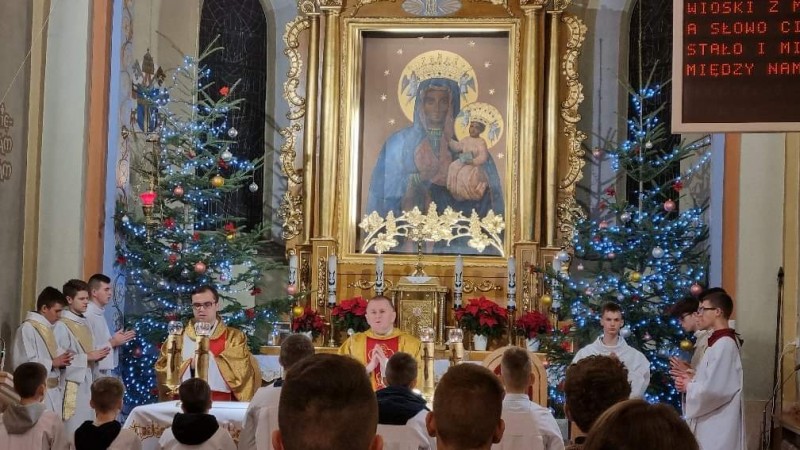 Tradycjnie jak co roku wierni parafianie przybyli jak pasterze do naszej parafialnej światyni aby oddać hołd nowonarodzonemu Dzięciątku. W obstawę Mszy św. włączyła się schola parafialna. Ksiądz Proboszcz wygłosił kazanie a na zakończenie Mszy św. złożył wszystkim serdeczne życzenia.